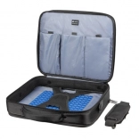 Vaše zařízení je chráněno systémem více úrovní: Air Cell System pro pohlcení nárazů, Anti‑Shock System s dvojitou zpevněnou rámovou konstrukcí a X‑Holding System s elastickými popruhy, které fixují notebook proti otřesům. Nechybí trolley pás pro snadné nasazení na výsuvné madlo kufru.