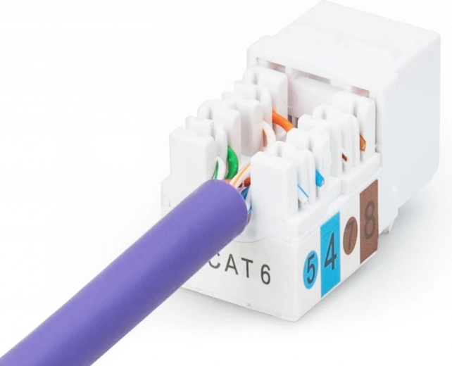 Keystone modul RJ45 CAT6 UTP s LSA (IDC) zakončením je navržen pro profesionální i domácí instalace, kde je kladen důraz na stabilitu a rychlost sítě. Splňuje požadavky třídy E s frekvenčním rozsahem do 250 MHz dle ISO/IEC 11801 a EN 50173, takže se hodí pro gigabitové sítě a datové přenosy s vysokou spolehlivostí.