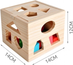 Tato dřevěná vkládačka je ideální vzdělávací hračka pro děti od 2 let. Kostka má vyřezané otvory různých tvarů a obsahuje 13 pestrobarevných bloků, které do nich přesně pasují. Děti trénují trpělivost, soustředění a rozvíjejí kognitivní dovednosti při hledání správných kombinací.