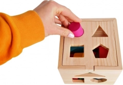 Děti si procvičí logické myšlení, jemnou motoriku i koordinaci oko–ruka při hledání správných otvorů pro 13 barevných tvarů.
