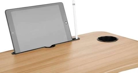 Tento přenosný stolek na notebook kombinuje funkčnost a pohodlí v kompaktním provedení. Díky prostorné pracovní ploše je ideální pro práci, studium i relax – ať už na posteli, gauči nebo u konferenčního stolku. Integrovaný slot bezpečně podrží tablet nebo telefon pro multitasking, zatímco držák na šálek minimalizuje riziko polití.