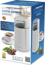 Začněte den vůní čerstvě namleté kávy. Kompaktní elektrický mlýnek Espresso v bílé barvě vám umožní připravit kávu přesně podle chuti a rychle. Díky možnosti nastavení hrubosti mletí si snadno přizpůsobíte výslednou extrakci. Vyniká rychlým a jednoduchým ovládáním, moderním ergonomickým designem a multifunkčním využitím – zvládne i mletí koření, semínek a ořechů.