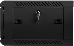 Přední dveře se zámkem a dodanými klíči chrání síťové prvky před neoprávněným přístupem a zároveň umožňují vizuální kontrolu stavu zařízení.