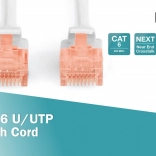 Kabely DIGITUS jsou vyrobeny a testovány podle standardů ISO/IEC 11801 a DIN EN 50173 CAT 6, což zaručuje vynikající výkon v okablení DIGITUS CAT 6. Kabely byly testovány na frekvenci až do 250 MHz, včetně parametrů jako přeslech (NEXT). Každý kabel je vybaven ochranou zalitého návleku s odlehčením tahu. Návlek má také ochranu západky, která zabraňuje zahákování kabelů a lámání západky. Snadnou identifikaci kategorie 6 umožňuje červené zbarvení konektorů.
