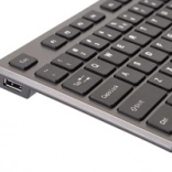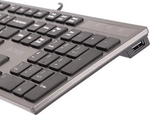 Vestavěný USB hub po obou stranách klávesnice umožní snadno připojit myš, flash disk či další příslušenství bez sahání k počítači.