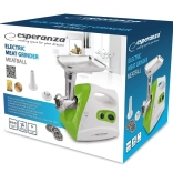 Výkonný elektrický mlýnek na maso ESPERANZA s motorem 600 W zvládne rychlé a rovnoměrné mletí. Díky 3 nerezovým diskům (2,7 / 4 / 8 mm) připravíte jemné i hrubé mletí, a s příslušenstvím na klobásy a kebbe rozšíříte možnosti domácí kuchyně. Protiskluzové nožičky zajišťují stabilní a bezpečný provoz.