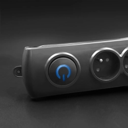 Podsvícený vypínač umožní okamžitě odpojit všechna zařízení bez shýbání – ideální na podlaze u pracovního stolu či TV sestavy.