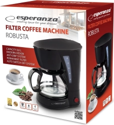 Kávovar Esperanza Robusta přináší pohodlí a efektivitu do vaší kuchyně. Je vybaven funkcí automatického vypínání po 40 minutách od dokončení cyklu, což zajišťuje bezpečnost a energetickou úsporu. Díky trvalému vícekrát použitelnému filtru snižuje vaše náklady na používání.