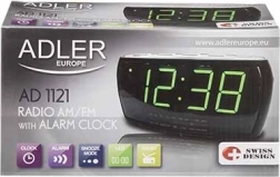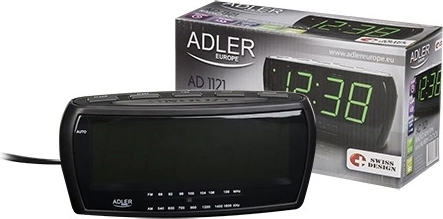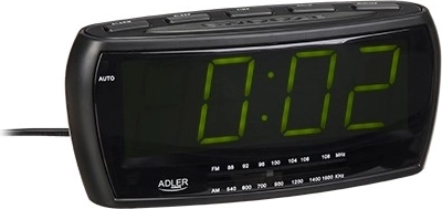 Radiobudík ADLER AD 1121 kombinuje přehledný čas s pohodlným buzením. Velké zelené LED číslice o výšce téměř 5 cm jsou výborně čitelné i z dálky a ve tmě. Můžete si zvolit buzení oblíbenou rozhlasovou stanicí nebo klasickým budíkovým tónem.