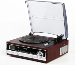 Stylový retro gramofon, který potěší milovníky vinylů i moderní posluchače. Nabízí přehrávání desek na 3 rychlosti 33/45/75 ot./min, integrované rádio, vstup AUX pro připojení dalších zdrojů a vestavěné reproduktory. Samozřejmostí je průhledný protiprachový kryt a elegantní dřevěný vzhled.