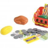 Set obsahuje vše potřebné k obsluze imaginárního obchodu, včetně košíku s doplňky, hry peněz a platební karty. Pro děti je zde možnost praktického počítání přímo na pokladně, což podporuje jejich matematické schopnosti a kreativitu.