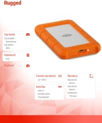 Externí disk LaCie Rugged USB-C 4TB je navržen pro ty, kteří hledají odolné úložiště s vysokou kapacitou. Jeho kompaktní konstrukce s rozměry 86 mm x 135,1 mm x 26 mm a hmotností pouhých 400 g umožňuje snadné přenášení. S kapacitou 4 TB budete mít dostatek prostoru pro všechny soubory, včetně fotografií, videí a dokumentů.