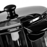 Integrovaný kohout umožňuje plynulé nalévání bez rozlévání. Chladné rukojeti usnadňují přenášení i při vysoké teplotě obsahu.
