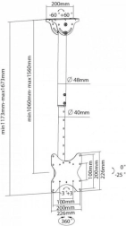 Stropní držák pro LCD/LED 23-42 palců 50kg nastavitelný, černý