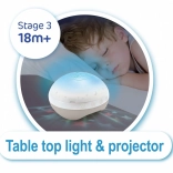 Projektor promítá hvězdičky a přehrává 6 melodií a 4 zvuky přírody, které pomáhají miminku rychleji usnout.