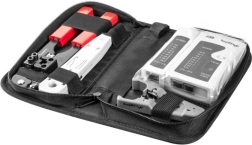 Všechny klíčové nástroje pro instalaci a servis sítí LAN jsou přehledně uloženy v lehkém a odolném pouzdře se zipem. Díky vyhrazeným přihrádkám máte vše po ruce a bezpečně zajištěno při přenášení.