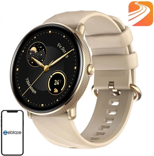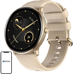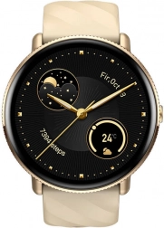Zlaté kovové pouzdro a béžový pásek dodávají hodinkám moderní vzhled a styl. Díky dotykovému rozhraní je navigace snadná.