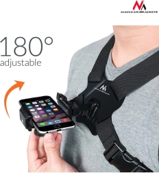 Tento postroj na hrudník nabízí možnost uchycení smartphonu, fotoaparátu nebo kamery GoPro, což umožňuje hands-free záznam záběrů. Je navržen pro použití během extrémních sportů jako cyklistika, snowboarding nebo horolezectví. Systém regulace délky popruhů zajišťuje pohodlné nošení pro každého uživatele. Vestavěné zrcátko usnadňuje přesné nastavení záběru. Postroj disponuje speciálním zamykacím mechanismem, který zajišťuje bezpečné upevnění zařízení.