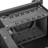 Tato 4U serverová skříň do 19" racku je navržena pro stabilní provoz a pohodlnou údržbu. Uzamykatelný čelní panel chrání komponenty, zatímco perforace a promyšlené proudění vzduchu zajišťují efektivní chlazení. Přední panel s USB a audio konektory usnadňuje rychlý přístup při servisních zásazích.