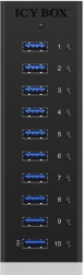 Rozšiřte svůj počítač o 10 portů USB 3.0 s rychlostí až 5 Gb/s. Tento aktivní hub Icy Box s odolným hliníkovým tělem nabízí stabilní externí napájení DC 12 V, vyhrazený nabíjecí port 5 V / 2,1 A (BC 1.2), Plug & Play i Hot Swap pro bezproblémové používání doma i v kanceláři.