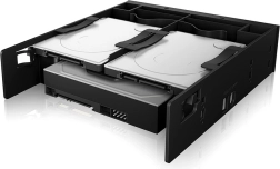 Šikovné řešení, když dochází místo. Do jediné 5,25" pozice snadno uložíte až tři disky – dva 2,5" SSD/HDD (7–9,5 mm, SATA) a jeden 3,5" disk. Konstrukce je navržena pro rychlou, bezpečnou a tichou montáž s důrazem na spolehlivost i pohodlí.