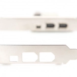 Dvě externí zásuvky umožní okamžité připojení periferií, zatímco interní konektor poslouží pro vedení do předního panelu nebo interní FireWire zařízení. Integrované 4pin napájecí připojení dodá portům dodatečný výkon pro energeticky náročné periferie.