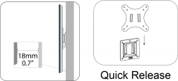 Držák se vyznačuje elegantním designem a vysokou kvalitou zpracování. Pomocí otvorů ve standardu VESA (75x75, 100x100) je možné snadno připevnit monitory nebo televizory s úhlopříčkou do 27 palců, nebo větší, pokud jejich hmotnost nepřesahuje 18 kg.
