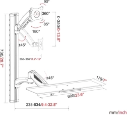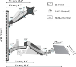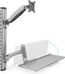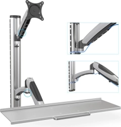 Výkonné nástěnné rameno umožňuje instalaci monitoru nebo televize a klávesnice, čímž zajišťuje maximální flexibilitu a komfort v práci či domácím prostředí. Je vybaveno otvory ve standardu VESA (75x75, 100x100), což umožňuje montáž monitorů do 27" a hmotností do 8 kg. Rameno dokáže monitor otáčet o 360 stupňů a nabízí rozsáhlé možnosti horizontálního a vertikálního nastavení. Navíc je vybaveno integrovaným systémem pro správu kabelů, což zajišťuje čistý a organizovaný prostor. Je vyrobeno z kvalitních materiálů s šedou práškovou úpravou.