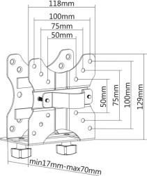 Lze jej připojit také zespodu pracovní desky nebo jiných nábytku. Tento držák je vhodný pro mini počítače o tloušťce 17 až 70 mm a hmotnosti do 5 kg.