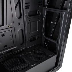 Podpora horních a zadních 120mm ventilátorů, volitelně dvojice 120mm pro chlazení GPU. Magnetický horní filtr a vyjímatelný filtr zdroje usnadní čištění.