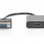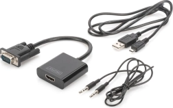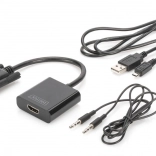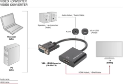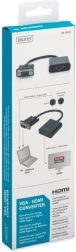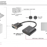 Konverze analogového signálu VGA na digitální signál HDMI vám umožňuje propojit zařízení disponující pouze VGA výstupem například s monitorem, televizorem nebo projektorem s HDMI vstupem. Protože VGA vstup může přenášet pouze video signál, je konvertor vybaven také audio jakem 3,5 mm. To zajišťuje, že jakékoliv možné stereo signály jsou také konvertovány a integrovány do HDMI videa, a proto je jejich přehrávaní po HDMI možné například na vaší televizi.