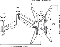 Nástěnný držák Maclean MC-784 je navržen pro maximální pružnost a pohodlí při nastavování úhlů sledování. Díky plynové pružině můžete snadno přizpůsobit polohu obrazovky podle svých preferencí: