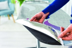 Třívrstvý potah s plně metalickou vrstvou odráží páru zpět do vláken. Zkracuje čas žehlení, zlepšuje výsledky a brání kondenzaci pod deskou.