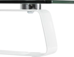 Stolová deska z tvrzeného skla o tloušťce 5 mm stojí na robustní kovové základně. Konstrukce je navržena pro stabilitu a bezpečné zatížení až 20 kg, takže bez problémů unese většinu monitorů, notebooků i menších tiskáren. Pod podstavcem vzniká praktické místo pro ukládání klávesnice, myši nebo zápisníků, které pomáhá udržet přehledný stůl.