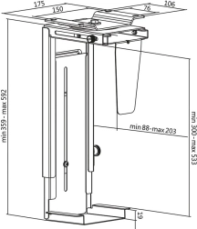 Nechte svůj pracovní prostor čistý a organizovaný s naším regulovatelným držákem pod stolní PC. Navržen speciálně pro montáž pod stůl, tato konstrukce šetří místo a zajišťuje ochranu vašeho zařízení. S pevnou konstrukcí a elegantním vzhledem je ideální volbou pro každé pracoviště.