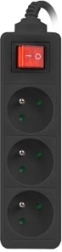 Lišta umožňuje připojení a napájení až tří zařízení s francouzskými zásuvkami CEE 7/5. Bezpečnost je prioritou, a proto je lišta vybavena dítě odolným mechanismem. S červeným vypínačem můžete pohodlně ovládat napájení všech připojených zařízení.