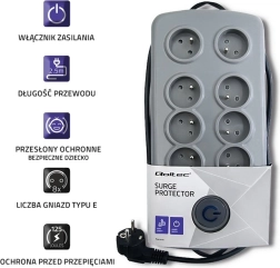 Uspořádejte kabely a chraňte svou elektroniku s praktickou prodlužkou se zpěťovou ochranou. Nabízí 8 zásuvek, kabel 2,5 m a pohodlný podsvícený nožní spínač Quick Switch pro snadné zapínání bez ohýbání. Elegantní šedé provedení, možnost montáže na nábytek a funkce navinutí kabelu zaručí čistý a bezpečný prostor doma i v kanceláři.