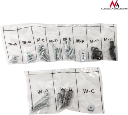 Součástí balení je přehledně rozdělená sada šroubů, hmoždinek a distančních prvků pro hladkou a rychlou instalaci na různé typy stěn.