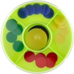 Dětská hra Blechy je zábavná hra, která rozvíjí jemnou motoriku a koncentraci u dětí. V balení najdete čtyři různobarevné sady koleček, každá sada obsahuje pět malých koleček a jedno velké. Hra má také krabičku s očíslovanými přihrádkami, umožňující mnoho herních kombinací. Úkolem je pomocí velké blechy dostat všechny malé blechy do přihrádek v krabičce.