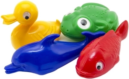 - 4 plovoucí zvířátka: kačenka, delfín, žabka, rybka