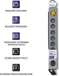 Zabezpečení: Tato přepěťová ochrana je vybavena ochrannými prvky, které zajistí bezpečí pro vás i ostatní uživatele: