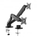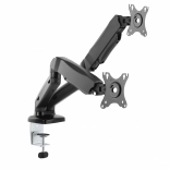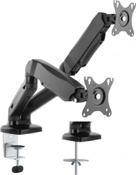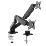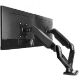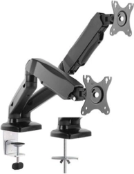 Elegantní dvojitý držák monitorů pro úhlopříčky až 32" uvolní místo na stole a zlepší ergonomii práce. Díky plynovým ramenům nabízí plynulé nastavení výšky, otočení a náklonu, má integrovanou správu kabelů a rychlou montáž díky VESA ve tvaru hrušky.