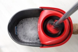 - Bez dotyku - Mopovací sada obsahuje kbelík s otočným mechanismem, který snadno vyždímá vodu z mopu bez kontaktu rukou.