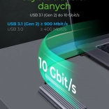 Využijte rozhraní USB 3.1 Gen 2 (Type‑C) až 10 Gb/s a NVMe PCIe 3.0 x2 pro reálné rychlosti až kolem 1000 MB/s – ideální pro práci s velkými projekty, zálohy i přenos 4K videí.