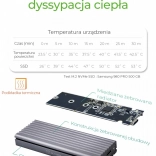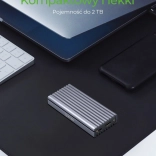 Kompaktní hliníkové pouzdro pro SSD M.2 NVMe s rozhraním USB‑C (USB 3.1 Gen 2) 10 Gb/s a podporou PCIe 3.0 x2 až ~1000 MB/s. Nabízí efektivní chlazení s chladičem a termopodložkou, přehlednou LED indikaci a praktickou ochranu proti zápisu pomocí přepínače. Kompatibilní s délkami 2230/2242/2260/2280.