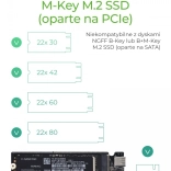 Instalace je snadná a rychlá, pouzdro podporuje disky s klíčem M-Key a délkami 2230/2242/2260/2280. Nechybí LED pro stav napájení a aktivity a také praktický přepínač ochrany proti zápisu, který zamezí nechtěným úpravám nebo smazání dat.