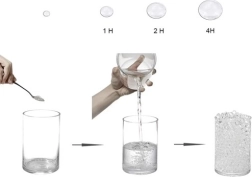 Po přidání vody perly během několika hodin výrazně nabobtnají až na cca 11 mm a jsou připravené k použití.