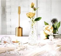 Průhledné perly dodají aranžím čistý, moderní vzhled a stabilizují stonky květin i svíčky ve skleněných nádobách.