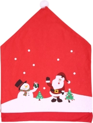 Vánoční potah na opěrku židle promění každý kout domova v útulné místo pro sváteční chvíle. Červený textil s potiskem Santy a sněhuláka, vloček a stromečků navazuje na tradiční motivy a vrchol zdobí měkoučká bambulka jako na čepici.