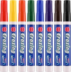 Praktická sada 8 barevných popisovačů na bílou tabuli pro školu, kancelář i domácnost. Zajišťují plynulé psaní, rychlé mazání a dlouhou životnost díky odolnému hrotu. Vhodné pro tabule, sklo, porcelán i papír, ideální pro přehledné poznámky, plánování i kreativní zvýraznění.